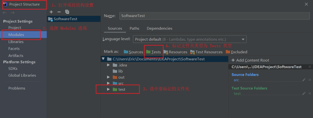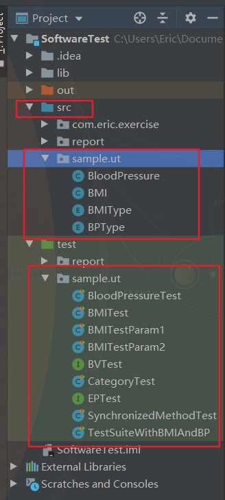 在 src 目录下写正常的 Java 类和功能方法,如上述在 sample.ut 包中的 Java 类; 在项目文件下创建 test 目录,并标记此目录为测试目录; 当我们要对某个 Java 类进行测试的时候,可以直接创建测试类,选择要测试的方法,它会自动添加在 test 目录下。