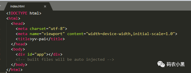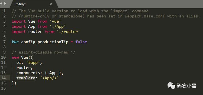 2.然后在页面入口js文件main.js中实例化vue,挂载到id为app的div上,并引入组件App,使用模板App,这样App组件就被挂载到了id为app的div上了,即挂载到了index.html中