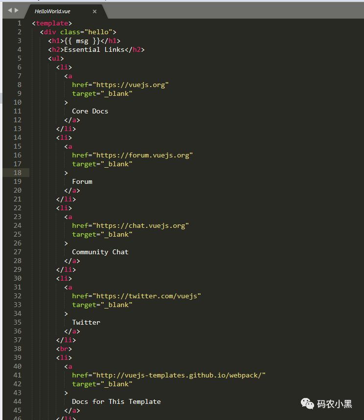 5.打开components/HelloWorld.vue组件,会发现这里就是我们访问的网页显示的内容