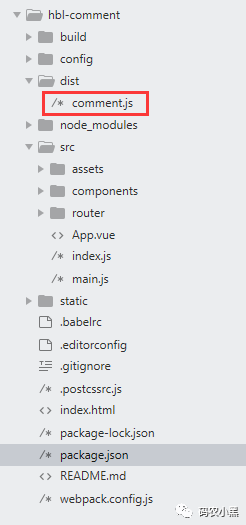 命令执行完成之后会发现在dist目录下生成了comment.js文件,如下图