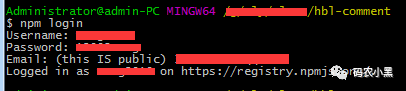 打包成功之后将其上传到npm上,提供其他用户使用,没有账号的可以去其官网注册