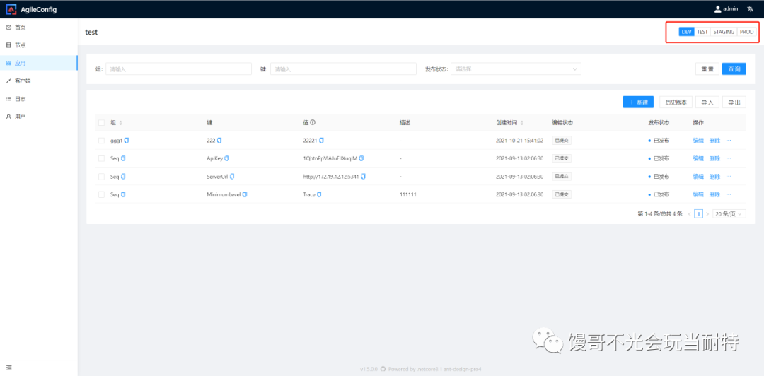 AgileConfig 从发布到现在,收到不少同学的 issue 说需要多环境的支持。也就是一个应用在不同的环境下可以配置不同的配置项。这是一个非常有用的功能,就跟我们开发的时候会设置多个 appsettings.json 文件一样,比如 appsettings.development.json 、appsetting.production.json 等等。那么这次 1.5 版本就为大家带来了这个功能。
