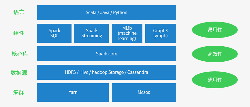 Spark是一种通用的大数据计算框架,它包含了大数据领域常见的各种计算模块,其组成及架构下图所示: