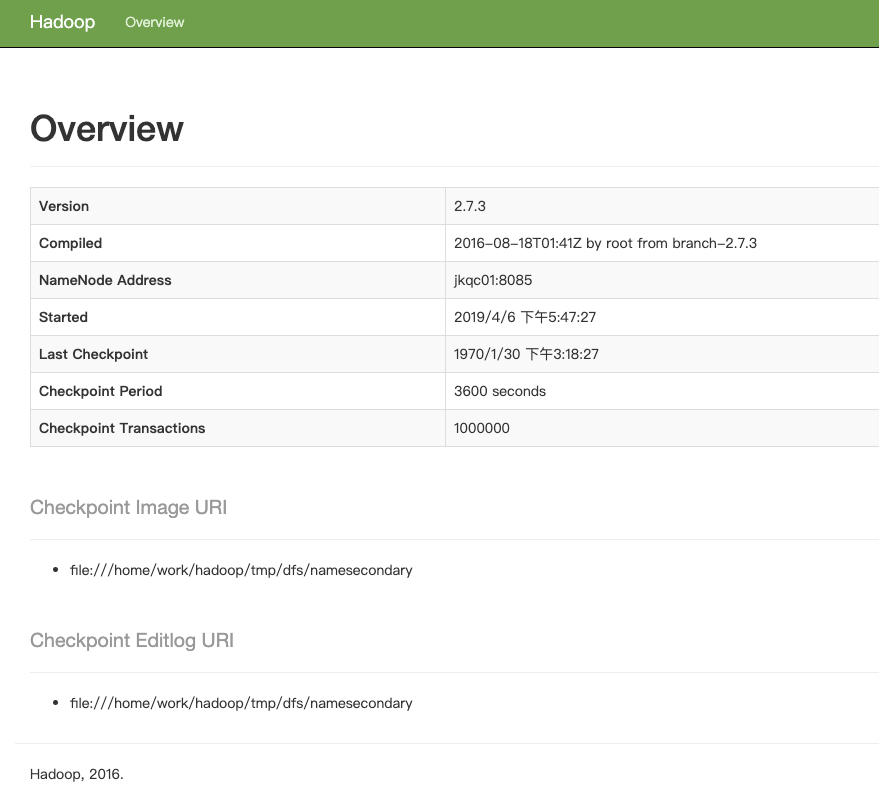 SecondaryNameNode:http://39.96.45.245:8811/status.html