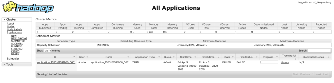 NameNode:http://39.96.45.245:8810?user.name=xf_jike