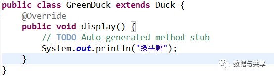 新需求:有人认为鸭子应该会飞,小编心想这个简单,在超类Duck中增加一个fly()方法,所有继承超类(Duck)的子类鸭子都将拥有飞的方法,妙哉!
