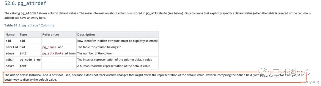 该sql 去pg(测试时版本为pg12)中执行 发现报错,pg_attrdef 找不到字段 adsrc