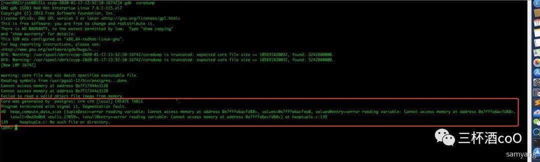 通过分析 pg 的 core dump ,确认是Bug 。现在刚刚开始搞pg,还没有解决的这个能力。后面需要学习下如何分析,如何提交bug,如果解决。关于这个知识点,可参考德哥的[PostgreSQL+MySQL 联合解决方案课程 - 汇总视频、课件] (https://github.com/digoal/blog/blob/master/202001/20200118_02.md)中的第14课