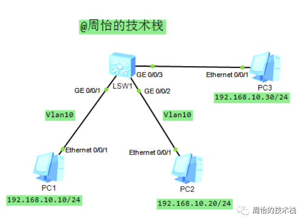 交换机上的所有接口,默认情况下属于同一个“广播域”,但是使用VLAN技术之后,可以实现不同的接口加入不同的VLAN,从而属于不同的“广播域”