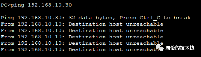 如图所示,是不通的。那为什么明明在同一个网段,却ping不同呢?
