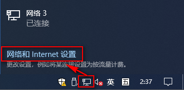 (1)点击windows10的右下角小显示器图标,点击网络和Internet设置