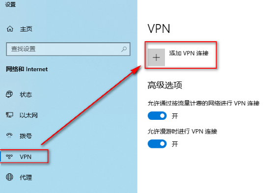 (2)在“VPN”选项中,点击“添加VPN连接”