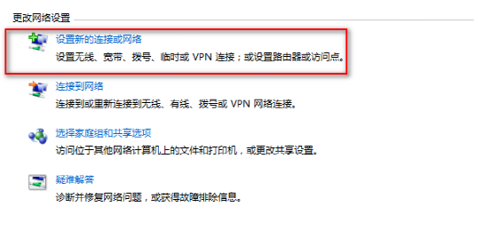 (2)点击设置新的连接或网络进行VPN拨号方式的创建