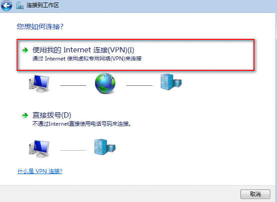 (4)选择“使用我的Internet连接(VPN)”然后点击进入: