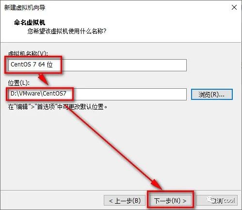 5.输入虚拟机名称和选择虚拟机文件存放的位置
