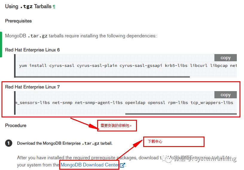 三、官方网站下载对应系统安装包并查看需要安装的依赖环境:
