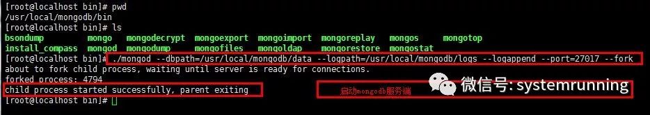 九、进入/usr/local/mongodb/bin目录下,启动mongodb服务.