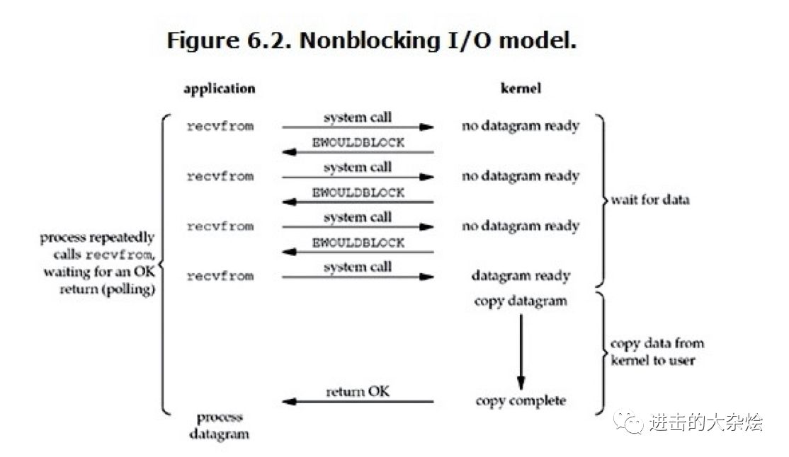 当内核未准备好数据时,进程只能block,傻傻等待。