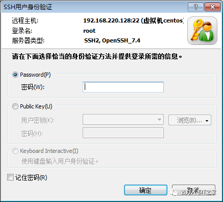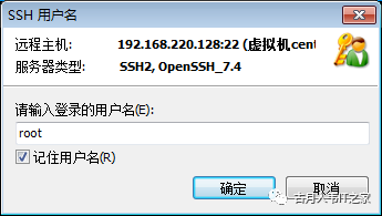 这一步提示需要输入登录centos的用户名,用户名为root,选择记住用户名