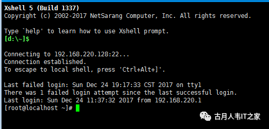 如果出现如上图所示,则证明xshell工具成功连接上centos服务器