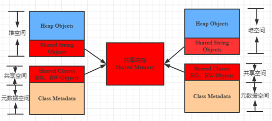 左右两边分别都是一个 Java 进程,双方通过共享内存达到节约内存、减少类解析的目的。下面通过案例介绍一下我们发现的现象,然后再介绍类共享机制的内部原理。