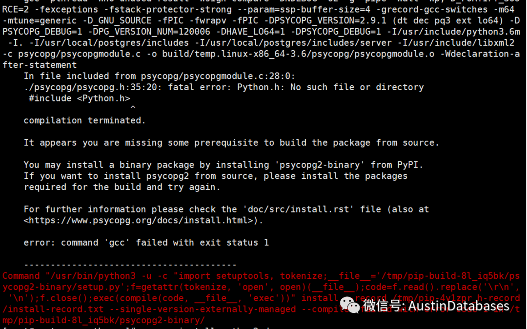 基于PYTHON3 以及 psycopg2 的组件来访问PG。部分机器在安装psycopg2时,遇到问题