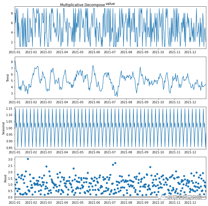 季节性分解中加法模型或乘法模型均可能会或可能无法将的特定时间序列干净或完美地分解。因为现实世界的问题是混乱和嘈杂的。可能存在加法和乘法组件。可能会出现增长趋势,随后呈下降趋势。可能存在与重复季节性成分混合的非重复循环。