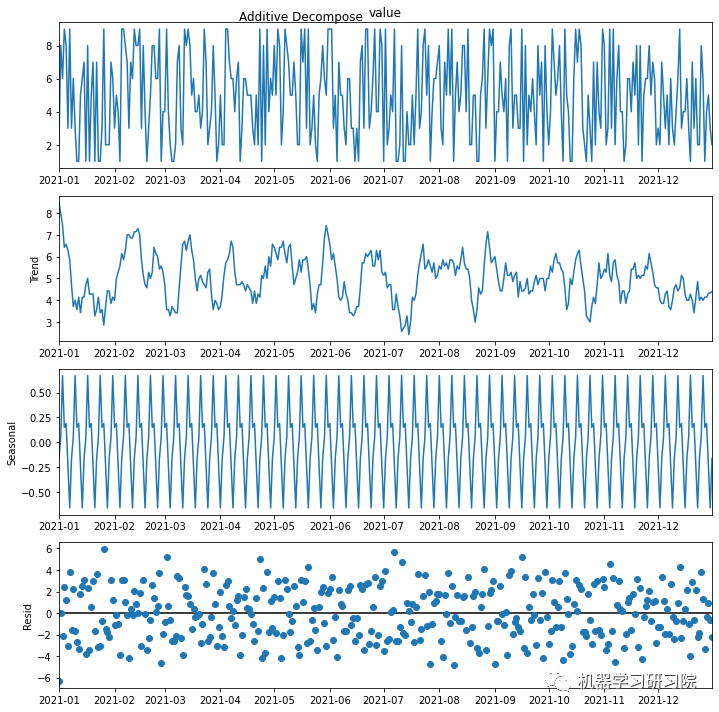 其中,是均值项, 是趋势项,是季节性周期项,是残值项。一般的,理想的分解模型中残值项应该是一个均值为0的随机变量。