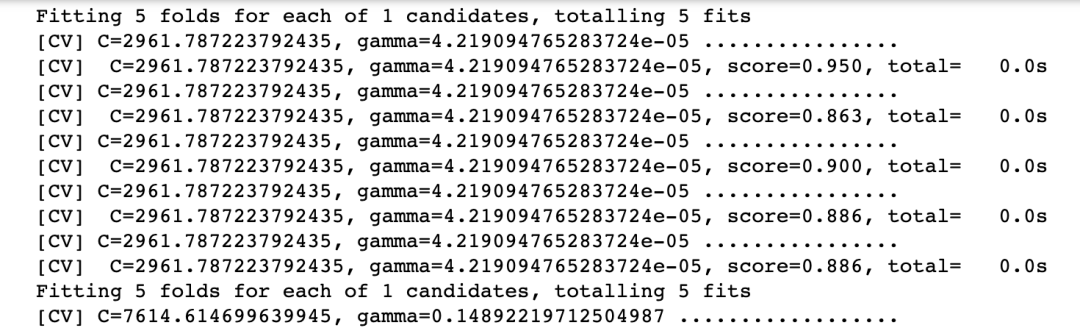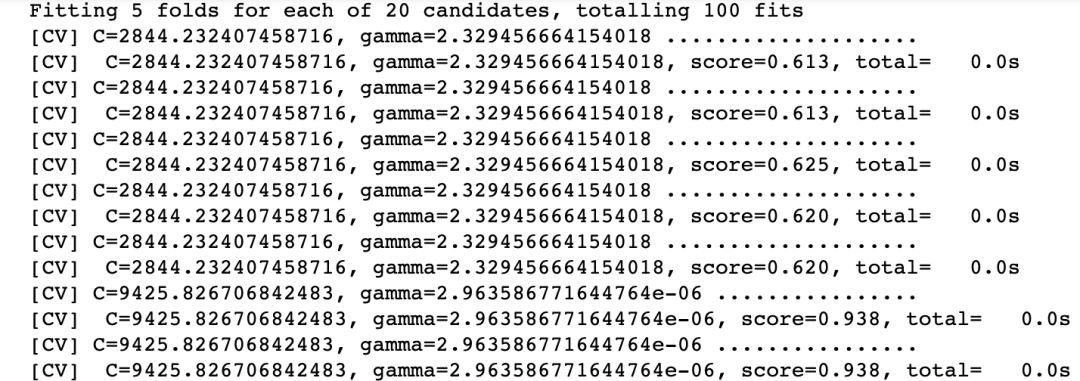首先指定参数C和gamma以及参数值的候选样本的分布,如下所示: