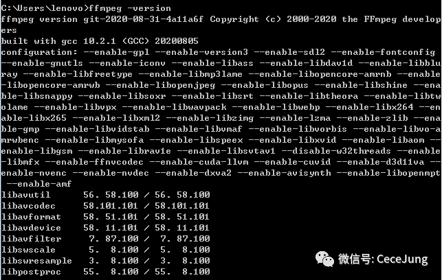 (4)进入 cmd,输入查看ffmpeg是否可用及版本