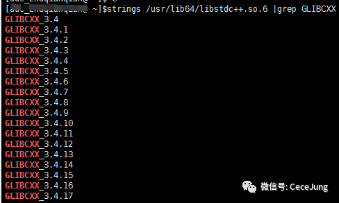 2)strings usr/lib64/libstdc++.so.6 |grep GLIBCXX 得到结果:最高为3.4.17