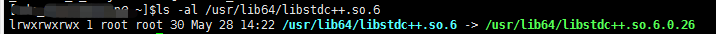 输入ls -al /usr/lib64/libstdc++.so.6 得到结果:lrwxrwxrwx 1 root root 30 May 28 14:22 /usr/lib64/libstdc++.so.6 -> /usr/lib64/libstdc++.so.6.0.26
