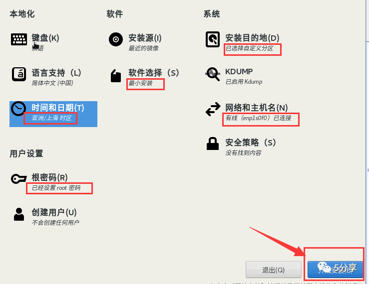 完成上述的所有更改后,回到先前的安装概览界面,点击“开始安装Begin Installation”以开始安装 CentOS 8.4。