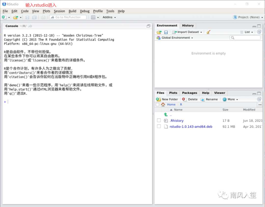 三. 启动Rstudio(控制台输入rsrudio即可)