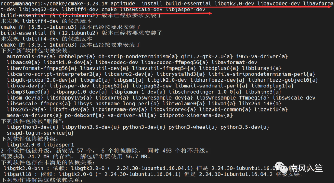 使用命令:apt-get install build-essential libgtk2.0-dev libavcodec-dev libavformat-dev libjpeg62-dev libtiff4-dev cmake libswscale-dev libjasper-dev 可能安装不了;此时使用命令: apt-get install aptitude 。将apt-get替换为aptitude安装即可。