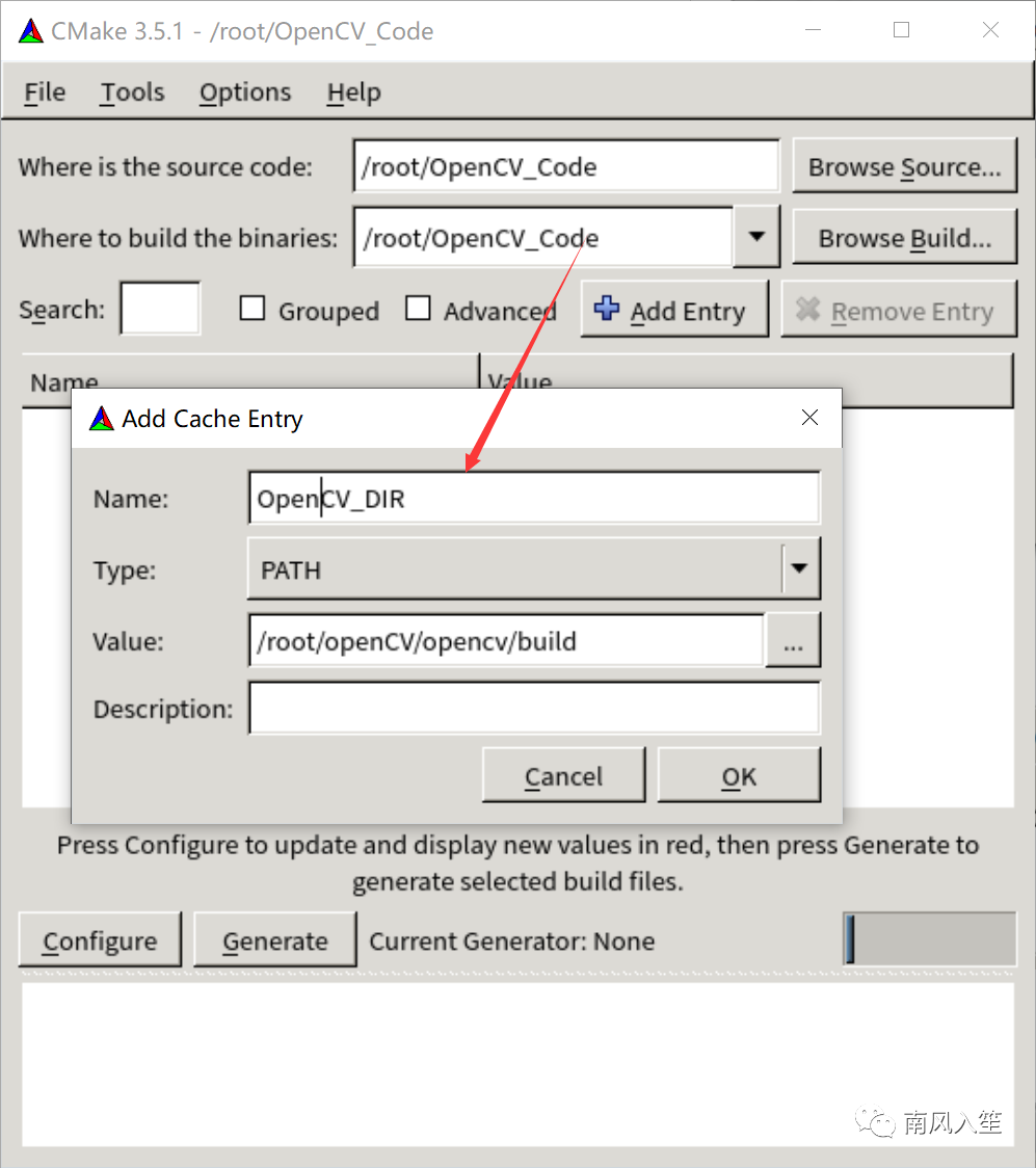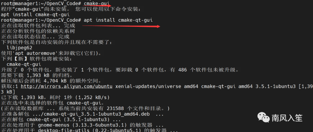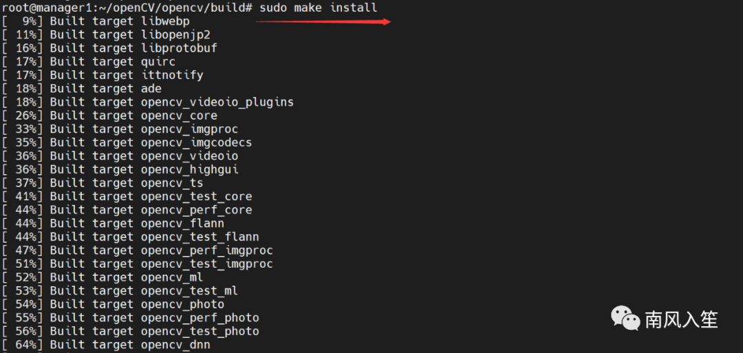 进入OpenCV文件夹,执行cmake . 命令会报错。此时解决方法就是删除当前文件夹中的CMakeLists.txt文件,然后新建build文件夹,再执行cmake ..命令。因为此时又到了更下一层的目录。