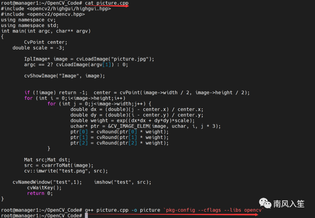 创建一个专门存放opencv代码文件的文件夹,此处小编创建为OpenCV_Code;创建一个名为camera.cpp的c文件,写入代码;执行命令:g++ camera.cpp -o camera `pkg-config --cflags --libs opencv`生成一个可执行文件camera,执行命令 ./camera即可。