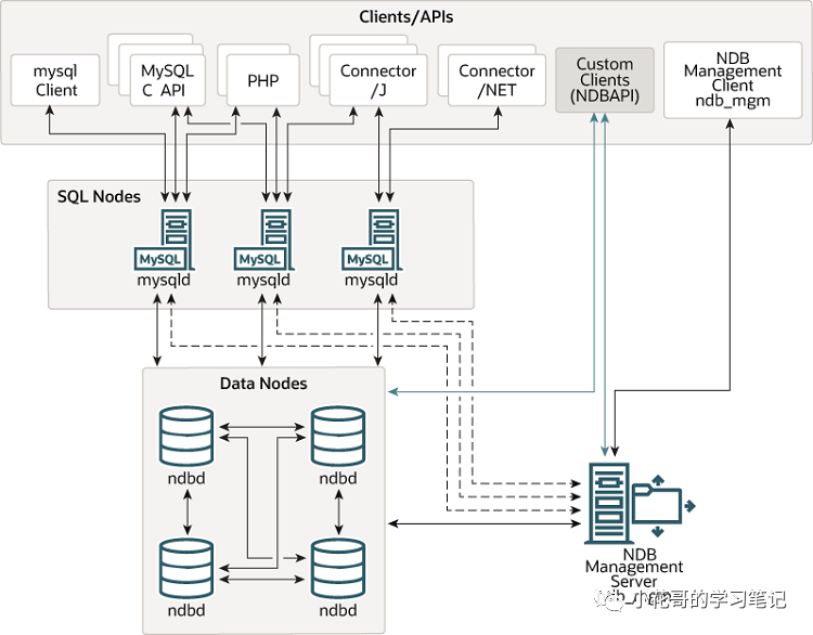 NDB Cluster是一种无共享系统中(shared nothing system)实现内存数据库集群的技术. 他是真正的分布式的架构, Replication只是高可用mysql架构的一种.