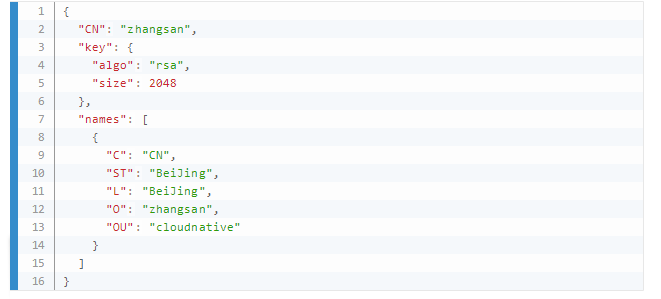 创建用来生成 CA 证书签名请求(CSR)的 JSON 配置文件