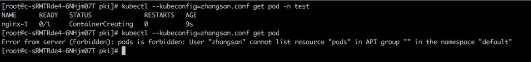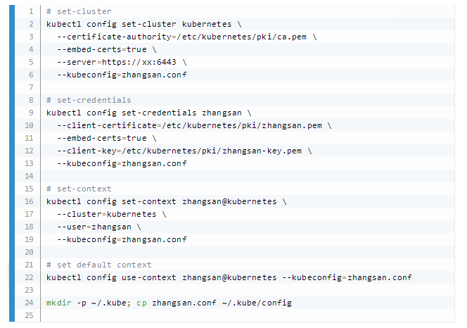 为张三生成专属的 kubeconfig 文件,名为zhangsan.conf