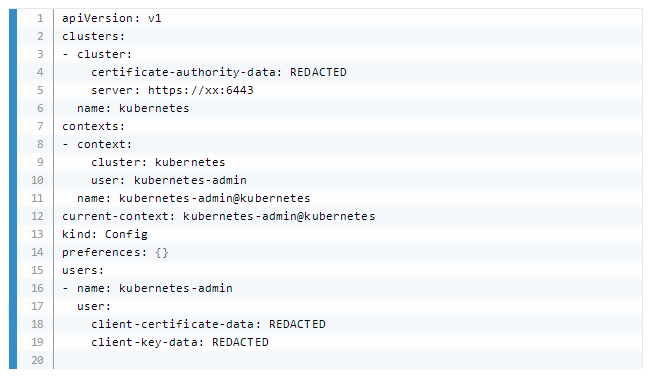 使用 set-cluster 设置了需要访问的集群,如上为 kubernetes 这只是个名称,实际为 –server 指向的 apiserver 所在的集群。