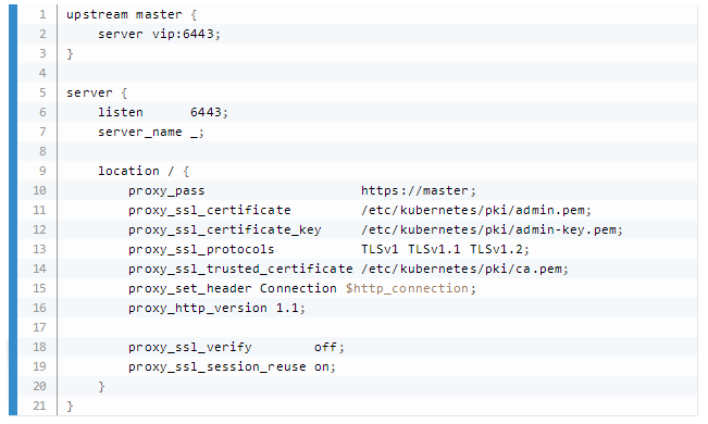 使用 nginx 的 passthrough,即 4 层转发 ssl 请求(配置简单,不需要apiserver证书)
