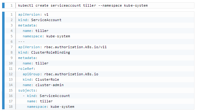 在 helm2 中,helm 操作需要配合集群内部署 tiller 的 pod 来负责资源的创建,因此 tiller 需要赋予一定的权限,一般为了简单会为 tiller 的 pod 赋予 cluster-admin 的最高权限