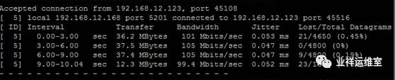 含义是连接服务器端,-b 100M 指的是测试100Mb/s,-i 1