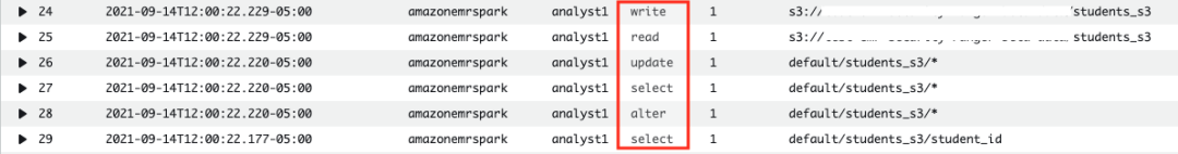从 Amazon EMR 5.32 开始,Amazon EMR 引入了 Apache Ranger 2.0 支持,这让您可以为 Apache Spark、Amazon Simple Storage Service(Amazon S3) 和 Apache Hive 启用授权和审计功能。它还允许在 Amazon CloudWatch 中记录授权审计。但是,尽管您可以使用这些授权功能控制 Apache Spark 向 Amazon S3 的写入操作,但 SparkSQL 支持仅限于读取授权。