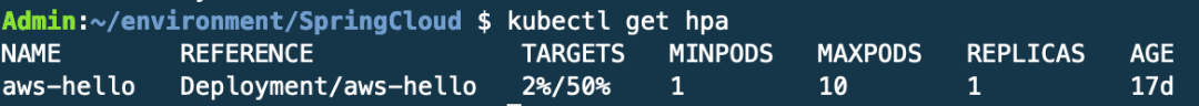 $ kubectl autoscale deployment--cpu-percent=50 --min=1 --max=10