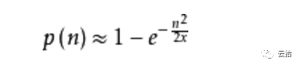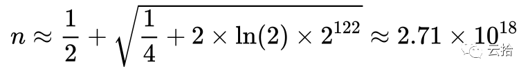 以 x = 2^122 计算出 n 个UUID后产生碰撞的机率: