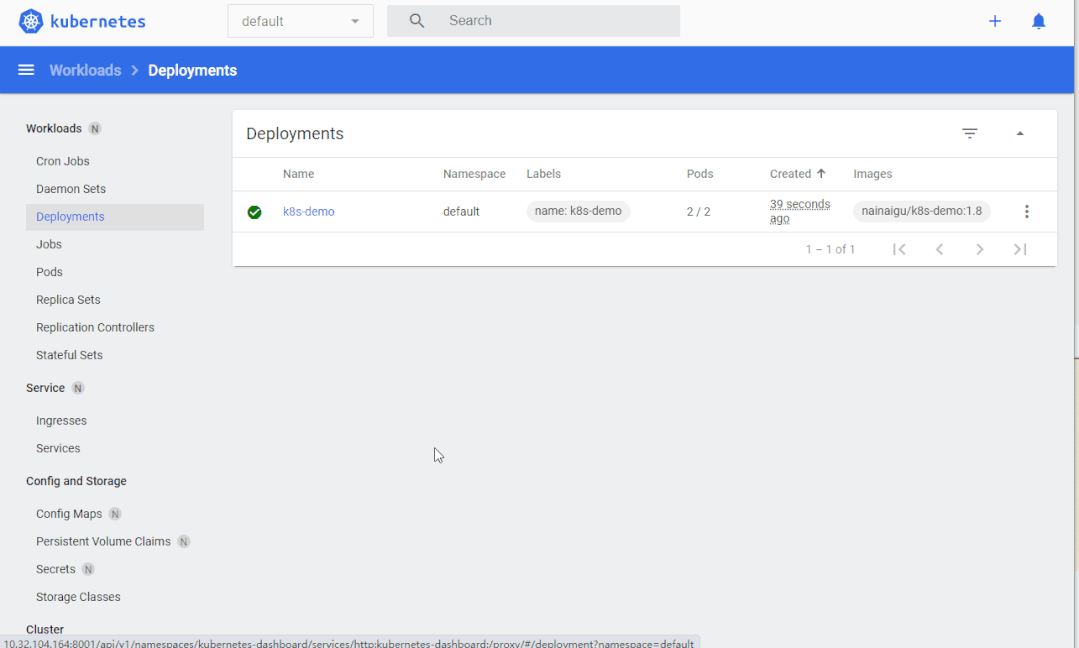 http://<本机IP>:8001/api/v1/namespaces/kubernetes-dashboard/services/http:kubernetes-dashboard:/proxy/#/service?namespace=default