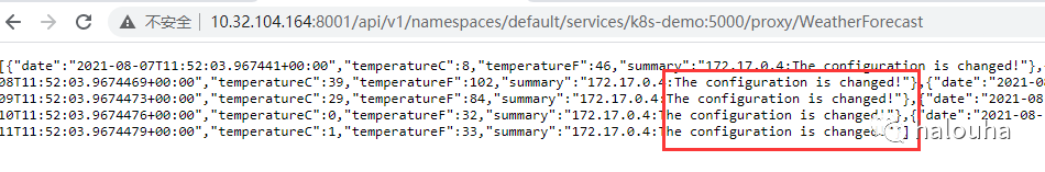 •k8s-demo:5000 代表你创建的service的名称和端口•/WeatherForecast 代表你服务暴露的接口