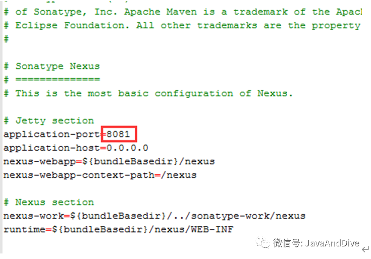 解压“nexus-2.12.0-01-bundle.zip”;Nexus默认的端口可以在配置文件中修改,路径为:nexus-2.12.0-01\conf\nexus.properties;里面的内容如下: